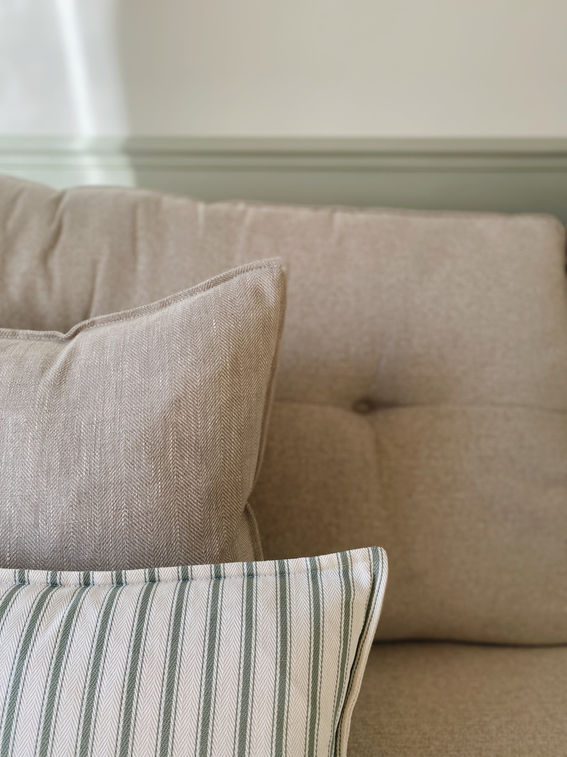 The Tilly - Beige Linen Herringbone Oxford Edge Cushion